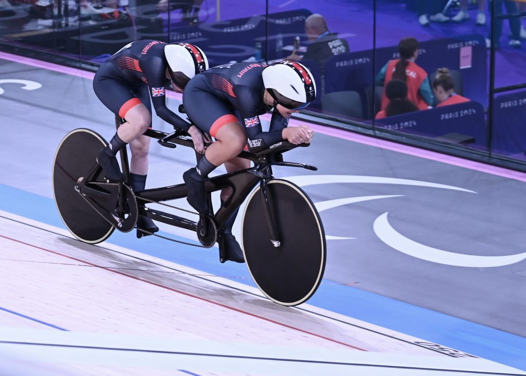 Stoker Sophie Unwin provides the power as Pilot Jenny Holl steers toward Paralympic gold in the 3000m Individual Pursuit, Paris 2024 (Photo: Gail Leenstra, CC BY-SA 4.0, via Wikimedia Commons)